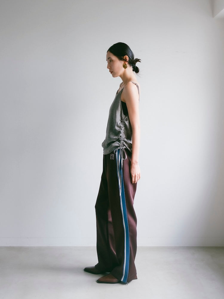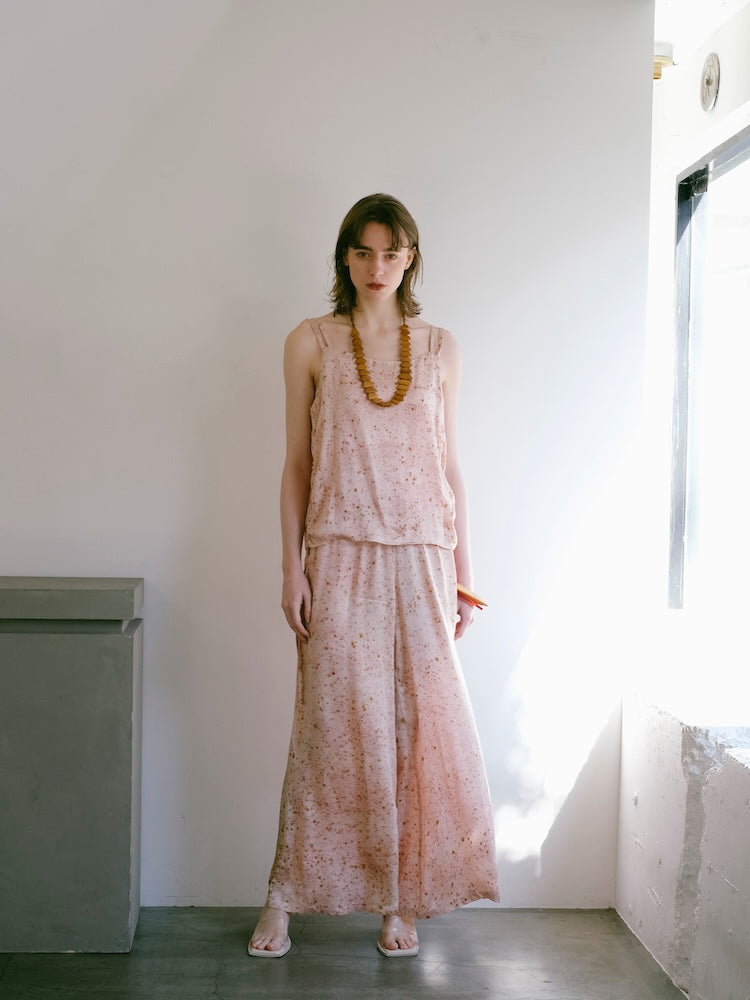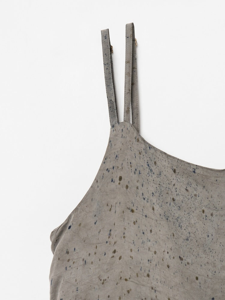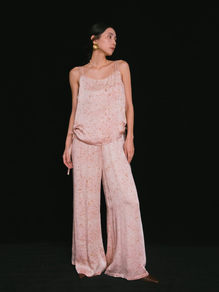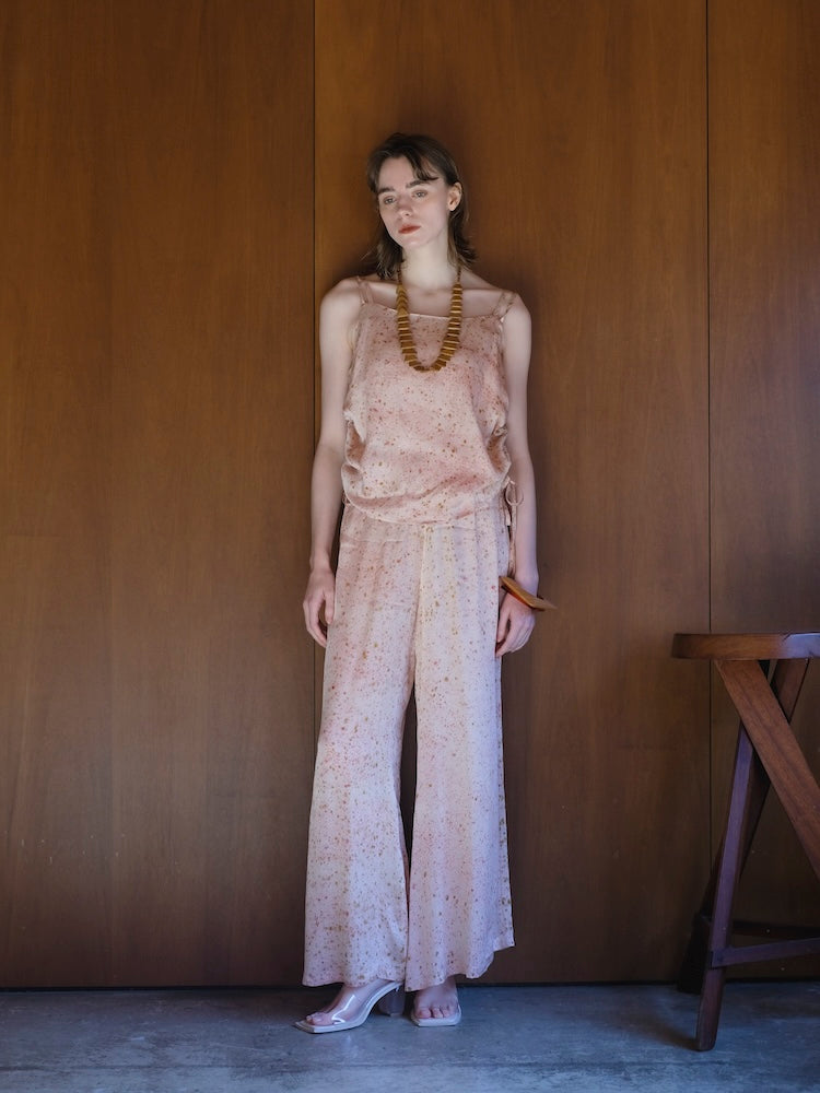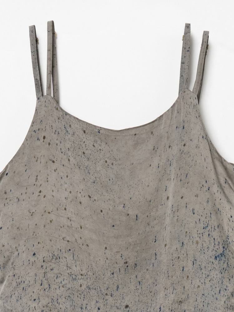 ヴィーガンシルクならではのとろみと、美しく流れる落ち感が魅力のギャザーキャミソール。