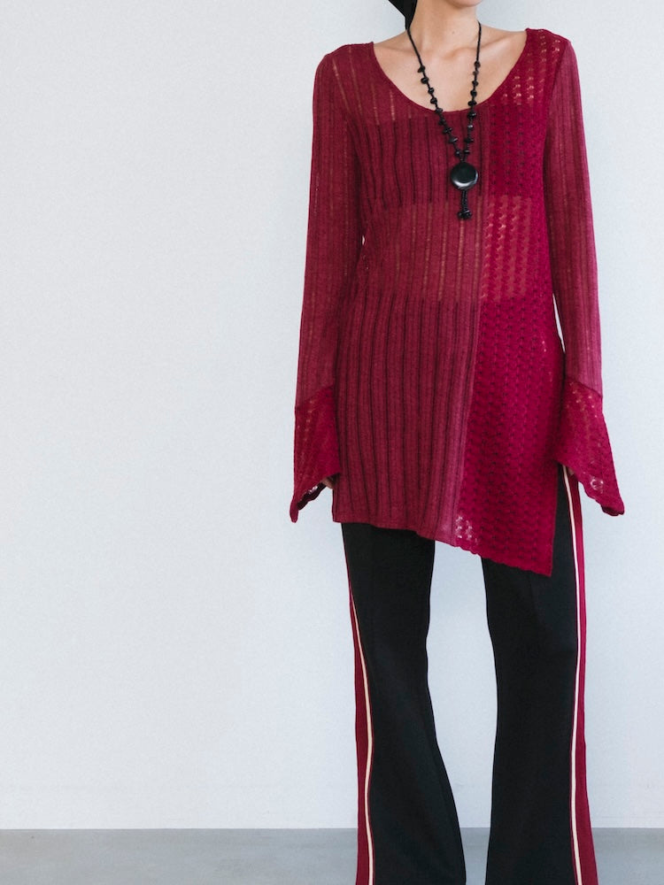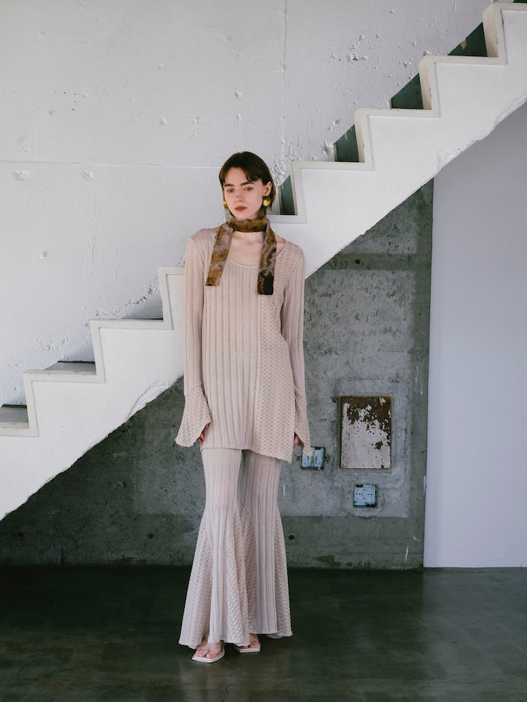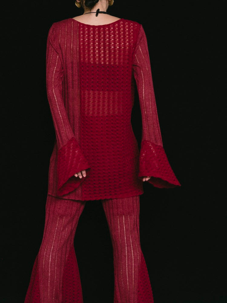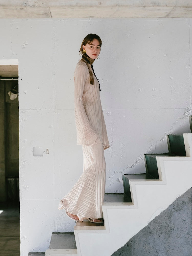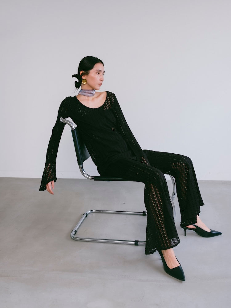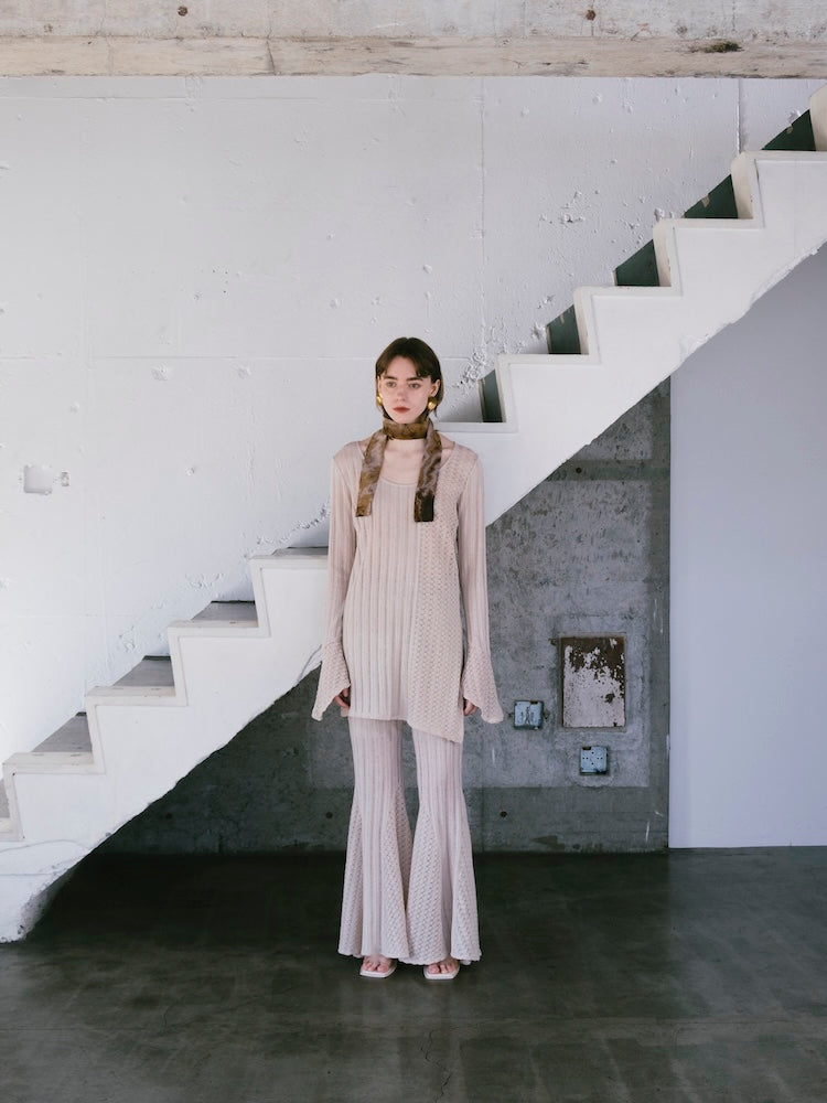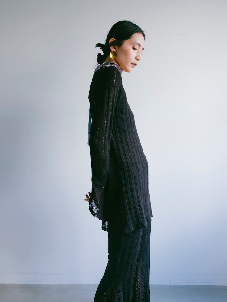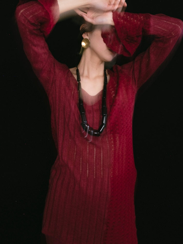 袖口はフレアを持たせ、深めのスリットを施すことで動きに合わせて軽やかな抜け感が生まれます。程よい素肌の見え方が、着用時に自然な開放感を与えます。